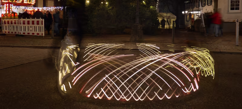 Die Belichtungszeit von 25 Sekunden entspricht knapp einer halben Umdrehung der Drehscheibe.